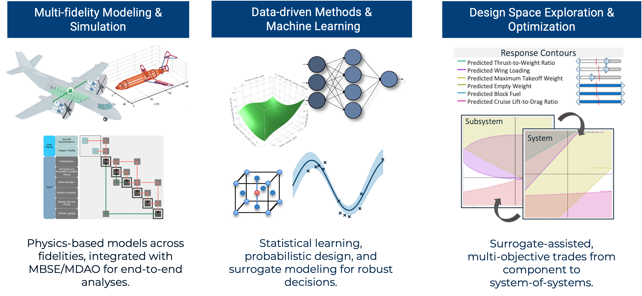 The IDEAS Lab is a research group in the Aerospace Engineering Department at the University of Michigan. We develop computational frameworks and tools for the design and optimization of next-generation aerospace vehicles and propulsion systems. Our research integrates physics-based modeling, machine learning, multidisciplinary design analysis and optimization, and digital engineering workflows to design and study complex engineered systems across component, vehicle, and fleet levels.